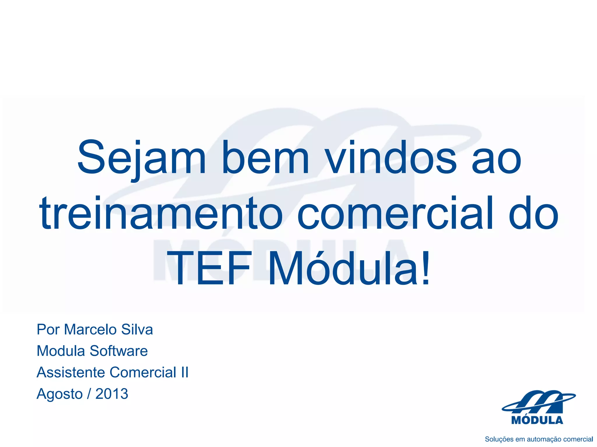 Este documento fornece uma introdução ao sistema TEF Módula da Modula Software, incluindo (1) uma explicação do que é TEF, (2) os tipos de solução TEF oferecidos, e (3) os requisitos e processo de instalação do TEF Módula.