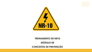 O módulo 04 do treinamento NR10 aborda conceitos de prevenção em segurança do trabalho relacionados à eletricidade, enfatizando a importância de entender as diferenças entre risco e perigo. A análise de riscos é apresentada como uma ferramenta essencial para garantir um ambiente de trabalho seguro, permitindo a identificação e controle de situações perigosas. O treinamento conclui ressaltando que o gerenciamento de riscos deve ser uma prática contínua e que faz parte do cotidiano dos trabalhadores.