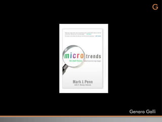 O documento discute tendências de marketing, incluindo a fragmentação da audiência devido à explosão digital, consumidores mais informados e exigentes, e a importância crescente da sustentabilidade e responsabilidade social. Ele também apresenta microtendências como a valorização do luxo funcional em vez de marcas, a aproximação das pessoas através de contatos online, e consumidores rastreando informações sobre produtos e empresas.
