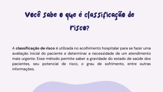 pacientes, seu potencial de risco, o grau de sofrimento, entre outras