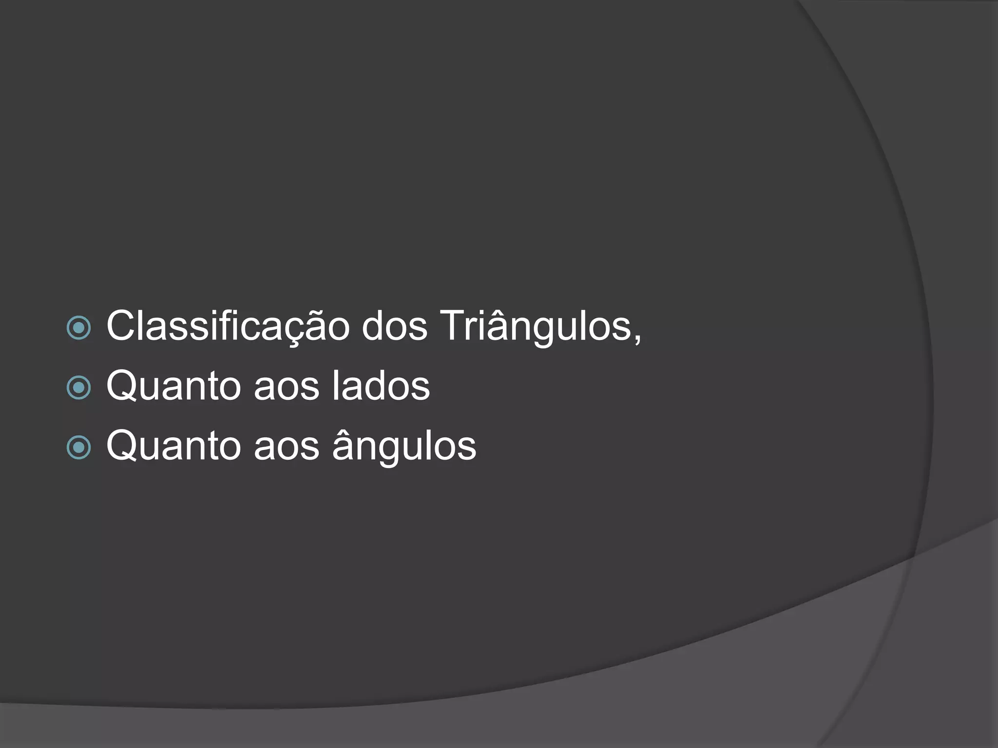 O documento classifica e descreve os triângulos de acordo com a medida de seus lados e ângulos, identificando os tipos escaleno, isósceles, eqüilátero, retângulo, obtusângulo e acutângulo. Além disso, destaca a propriedade da rigidez do triângulo, onde uma vez definidos seus lados, não é possível alterar seus ângulos.