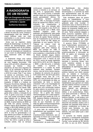 O documento discute a crise econômica e política no Brasil, com o PIB recuando 3,6% em 2016, a pior recessão da história do país. O governo Temer tenta implementar reformas impopulares que atacam os direitos dos trabalhadores, enquanto a população sofre com altos níveis de desemprego e empobrecimento. Os trabalhadores começam a se organizar contra as reformas através de greves e manifestações.