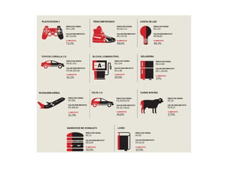 O documento discute a carga tributária no Brasil e em outros países. Apresenta dados mostrando que a Dinamarca tem a maior carga tributária em relação ao PIB (48,2%) e o Brasil está em 11o lugar (36%). Detalha a evolução da carga tributária no Brasil entre 2006-2010 e os principais problemas do sistema tributário brasileiro.
