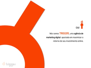 O documento descreve os serviços de uma agência de marketing digital chamada TRIGGER. A agência ajuda empresas a alcançar clientes online através de estratégias como publicidade, marketing de conteúdo, otimização para mecanismos de busca, marketing em redes sociais e análise de dados. A agência também cria sites e aplicações móveis responsivas para melhorar a experiência do cliente em diferentes dispositivos.