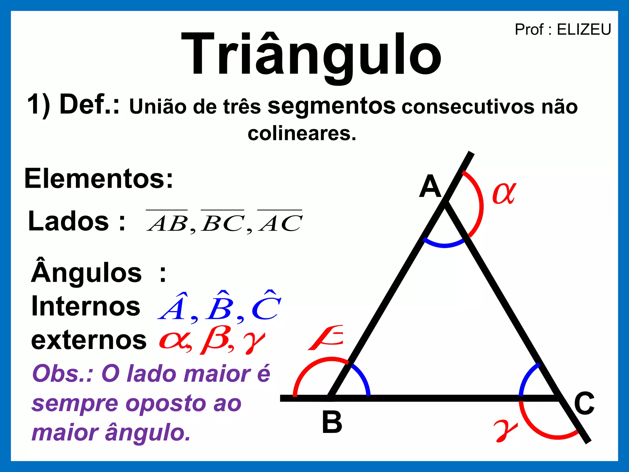 O documento apresenta os conceitos básicos sobre triângulos, incluindo sua definição, elementos, desigualdades triangulares, leis angulares de Tales, classificação de acordo com os lados e ângulos, e síntese de Clairaut.