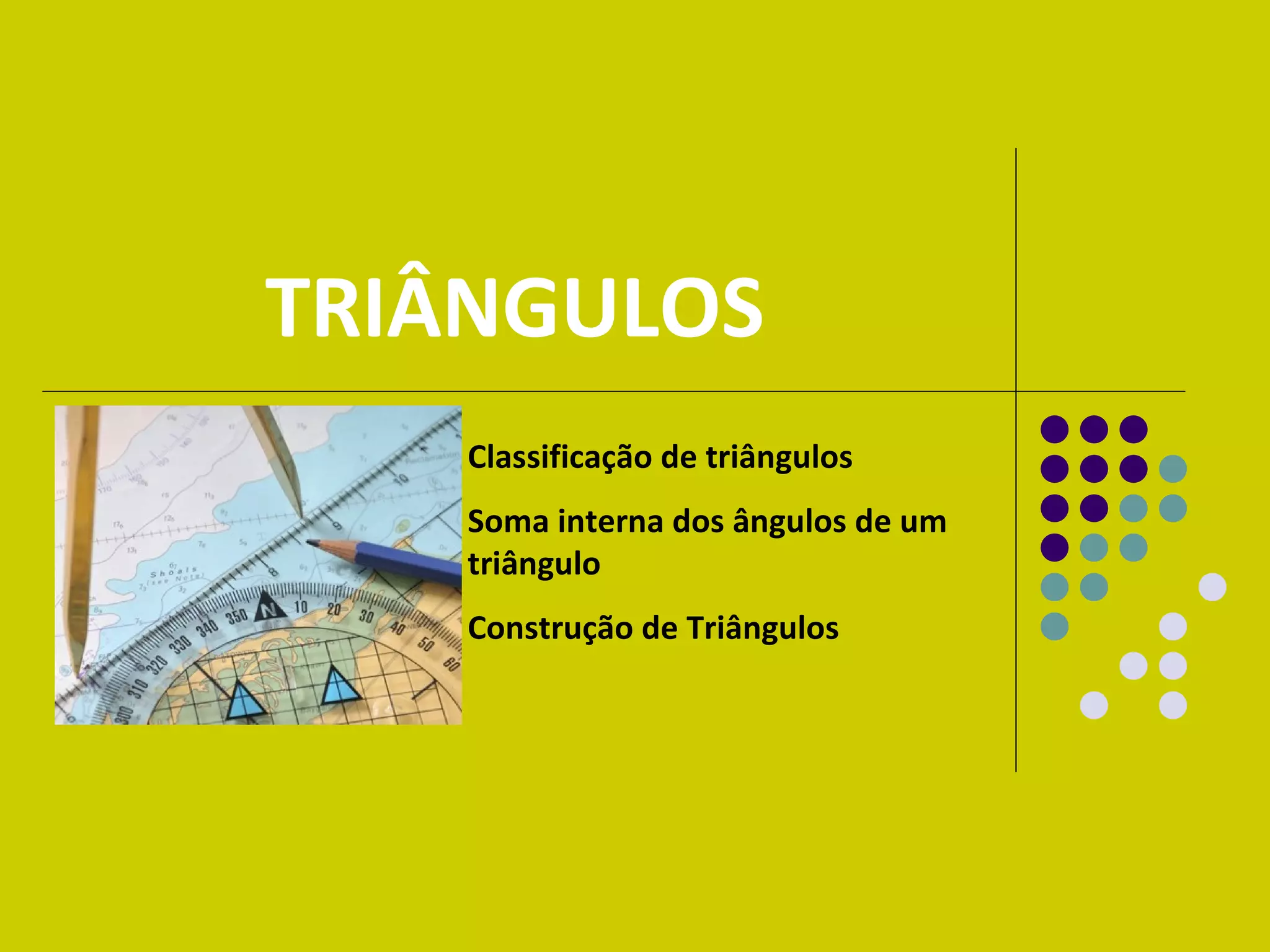 O documento discute triângulos, classificando-os de acordo com o comprimento dos lados em equilátero, isósceles e escaleno, e de acordo com a amplitude dos ângulos em agudo, retângulo e obtuso. Explica que a soma dos ângulos internos de um triângulo é sempre 180° e apresenta três métodos para construir triângulos a partir de informações dadas sobre seus lados e ângulos.