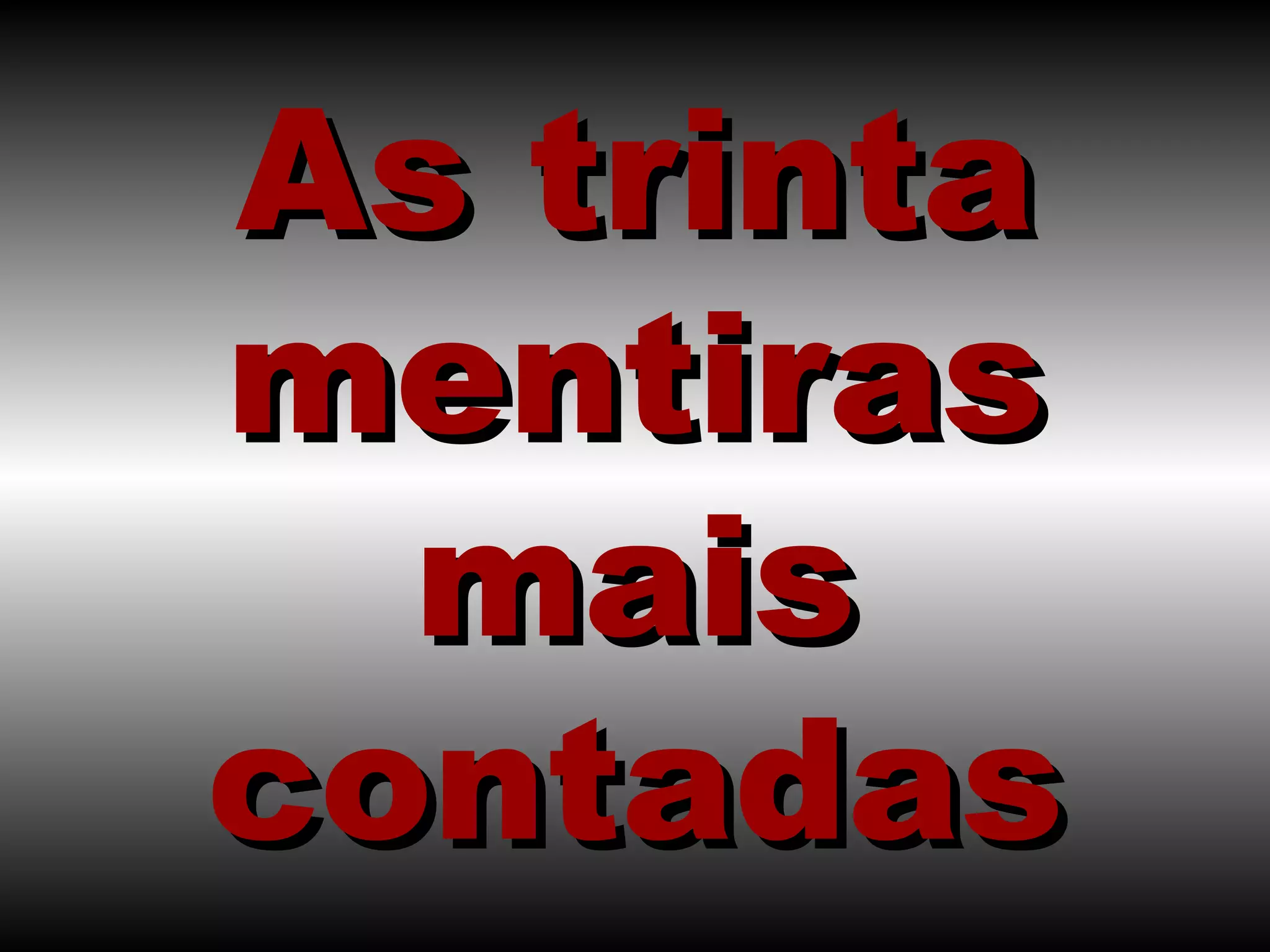 Este documento lista 30 mentiras comuns que as pessoas contam em diferentes situações, como promessas não cumpridas por advogados, feirantes, preguiçosos e devedores, desculpas de filhos adolescentes, promessas exageradas de políticos e vendedores, e afirmações falsas de namorados sobre fidelidade e planos de casamento.