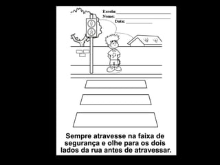METODOLOGIA Apresentaraos alunos informações sobre o trânsito utilizando a sala de tecnologia educacional por meio do power point. Nessa apresentação, os alunos conhecerão a definição de trânsito, quem faz parte do trânsito, placas de sinalização, cores utilizadas no semáforo, lateralidade, participação em jogos educativos com o tema trânsito e produção de pintura no Paint e no laptop por meio do Tux Paint. Simulação na quadra da escola, aproveita-se a oportunidade para ensinar a atravessar a rua, olhar sinais e atravessar na faixa. Atividade em sala de aula por meio de desenhos e confecção de um automóvel ou guarda de trânsito.