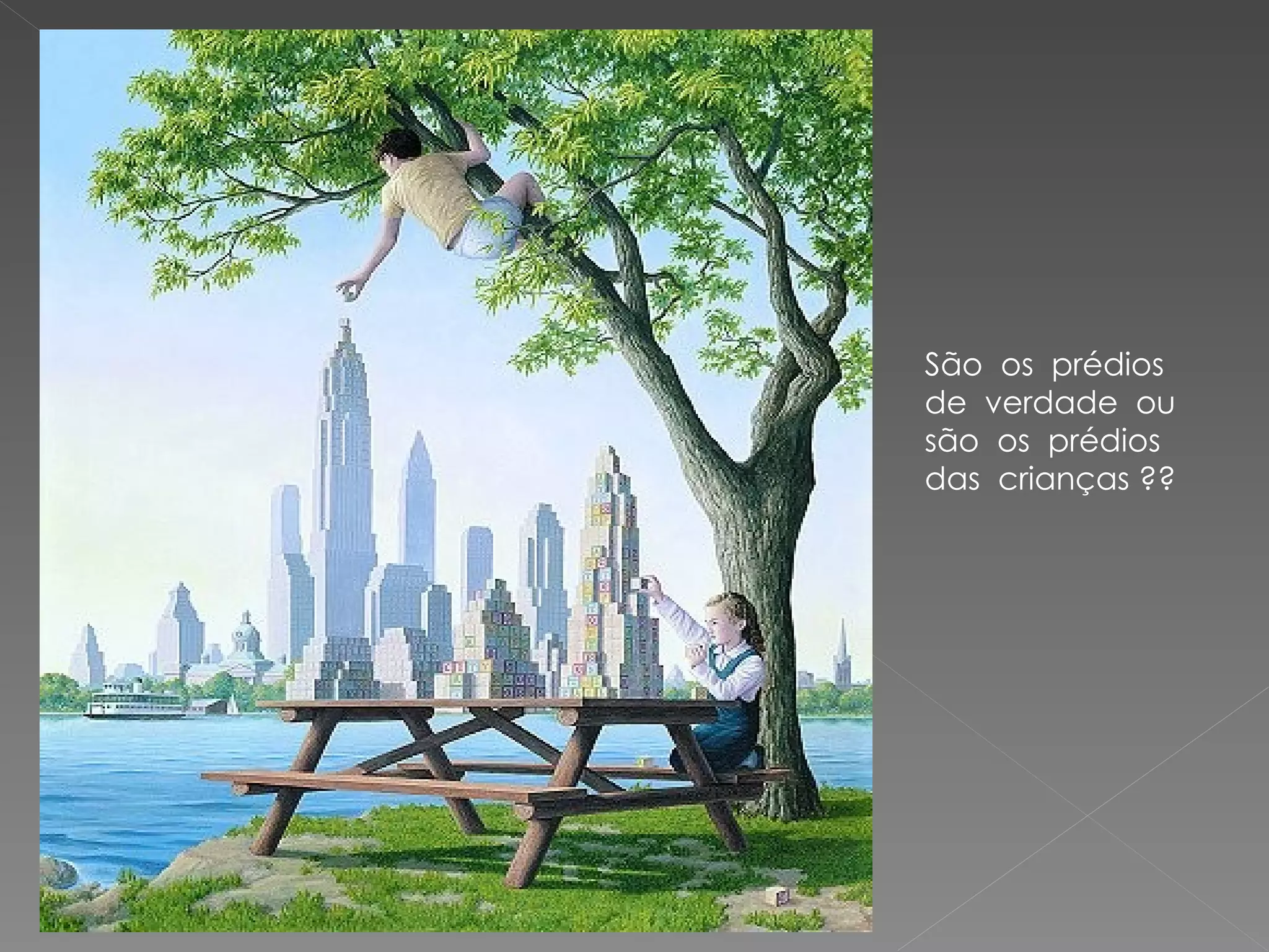 O documento apresenta uma série de perguntas sobre elementos de uma pintura, incluindo prédios, estradas, árvores, animais, castelos, patinação no gelo e construções como casas e casas na árvore. As perguntas parecem testar a capacidade de interpretação e observação do leitor sobre os detalhes da pintura descrita.