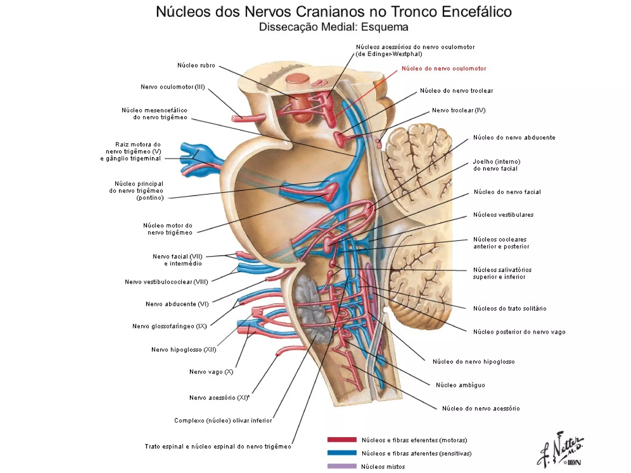 Muitos dos núcleos do tronco encefálico recebem ou emitem