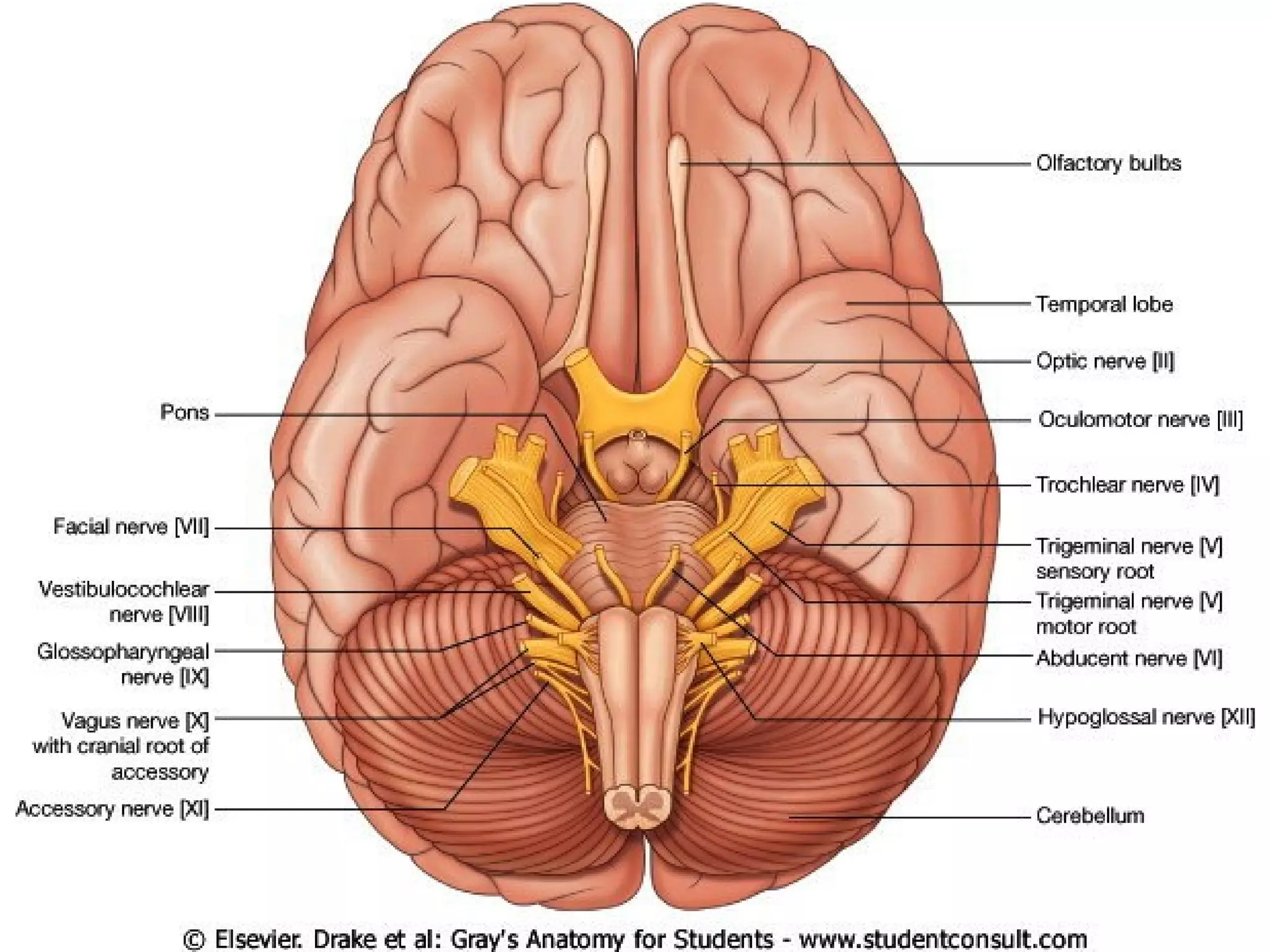 fibras nervosas que entram na constituição dos nervos cranianos.