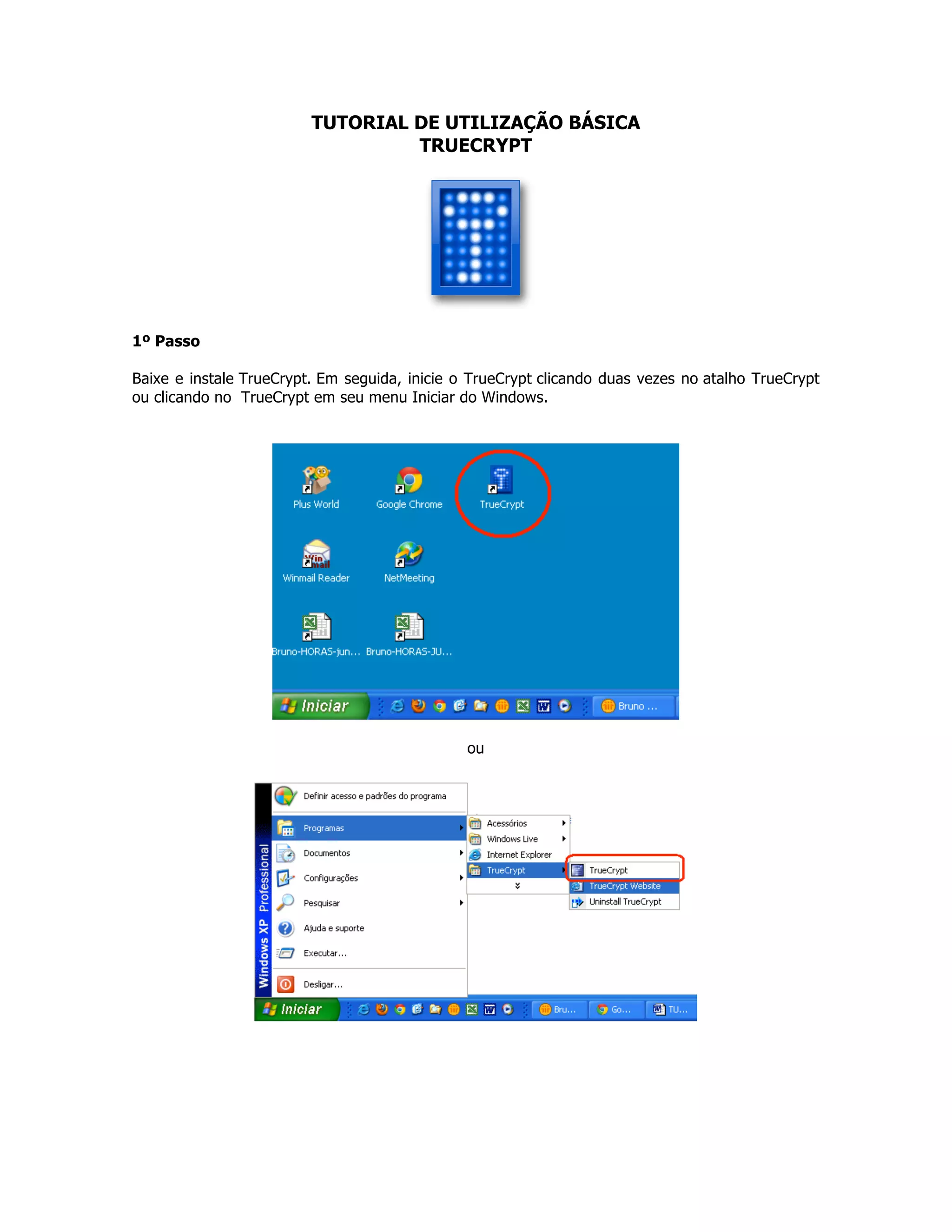 O documento fornece um tutorial passo-a-passo sobre como usar o TrueCrypt para criptografar arquivos e discos rígidos de forma segura. Ele explica como criar um volume criptografado, montá-lo e desmontá-lo, bem como configurar um disco removível criptografado e criptografar todo o disco rígido do computador.