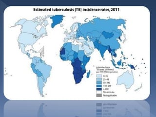 A tuberculose é uma doença infecciosa causada pelo bacilo Mycobacterium tuberculosis que afeta prioritariamente os pulmões, sendo transmitida por via respiratória. Os principais sintomas são tosse seca por mais de três semanas, febre e emagrecimento. O diagnóstico é feito por baciloscopia e o tratamento dura pelo menos seis meses para garantir a cura. A vacina BCG e o controle da doença pelo SUS são importantes medidas de prevenção e controle da tuberculose.