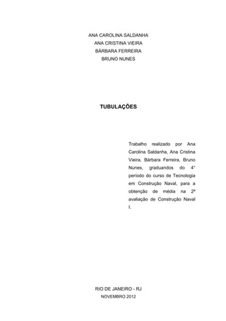 O documento resume os principais tipos de tubulações, seus métodos de fabricação, materiais utilizados e aplicações. Descreve tubos com e sem costura, feitos por fundição, forjamento, extrusão ou laminação. Detalha os materiais como aços, cobre, alumínio e plásticos, e suas aplicações em sistemas navais, industriais e de petróleo.