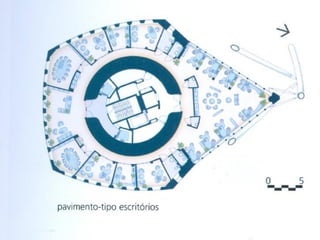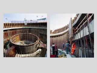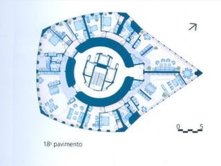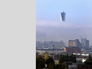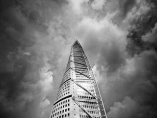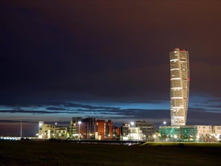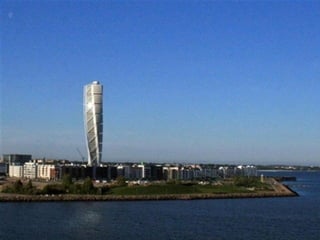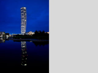 O Turning Torso é um arranha-céu de 190m projetado por Santiago Calatrava em Malmö, Suécia. O edifício se destaca por sua estrutura em espiral única, com uma torção de 90° da base ao topo. Sua estrutura principal consiste em um núcleo de concreto envolto por um exoesqueleto de aço inclinado e colunas helicoidais que transmitem cargas ao solo.