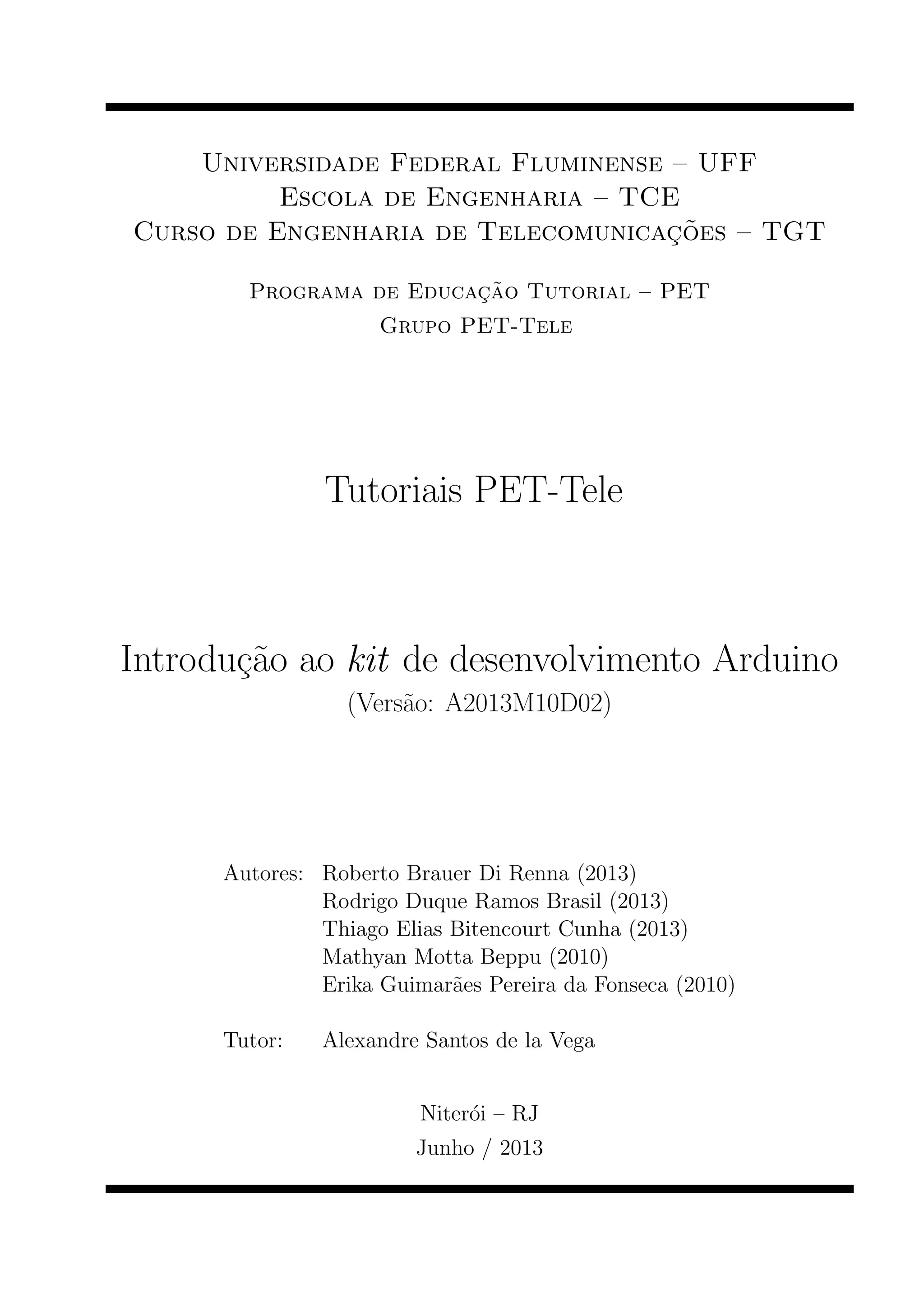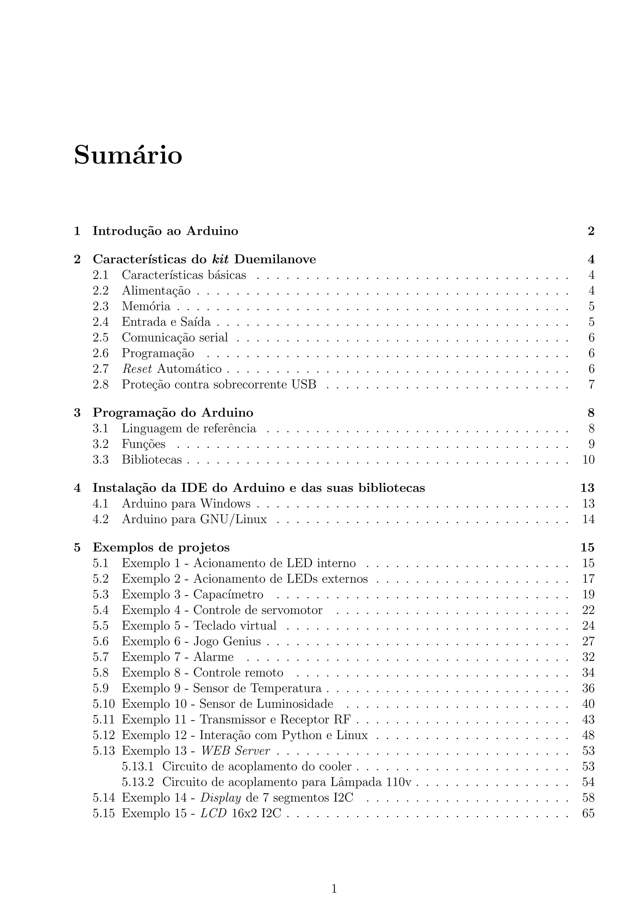 1. O documento apresenta um tutorial introdutório sobre o kit de desenvolvimento Arduino, descrevendo suas principais características, programação e exemplos de projetos.