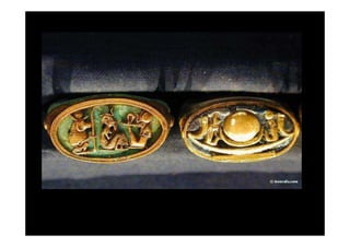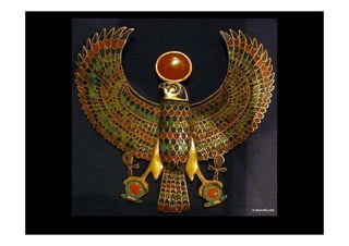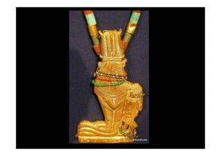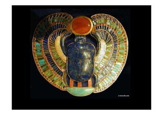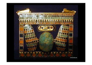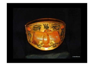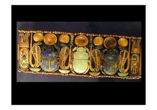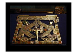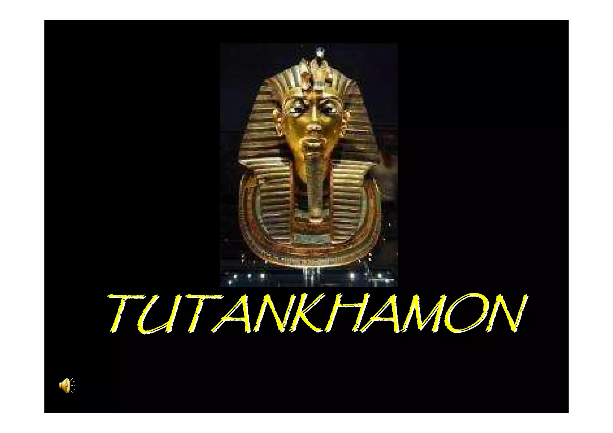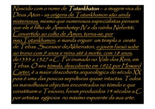 Tutankhamon foi um faraó egípcio que reinou de 1335 a 1327 a.C. após Akhenaton. Seu túmulo foi descoberto em 1922 e continha um tesouro com mais de 3400 objetos extraordinariamente preservados, fornecendo informações valiosas sobre a arte e cultura egípcias.