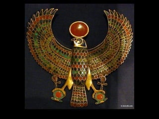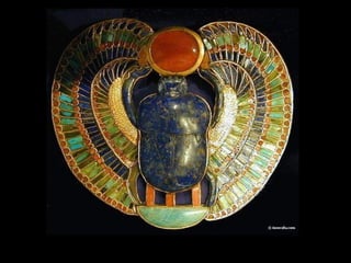 Tutankhamon, o jovem faraó que governou de 1335 a 1327 a.C., é conhecido por seu túmulo quase intacto descoberto em 1922, que revelou uma riqueza impressionante de artefatos elaborados por artistas egípcios. Seu túmulo continha 413 estatuetas, objetos de ouro e amuletos, todos destinados a proteger sua alma na vida após a morte. Esses itens, e outros 3.400 encontrados, estão expostos no Museu do Cairo.