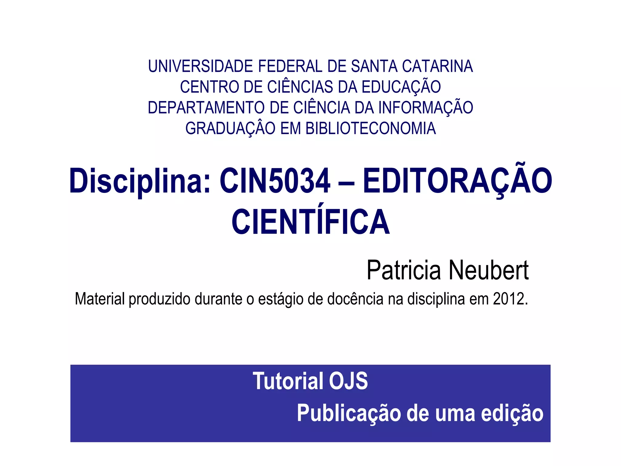 Este documento fornece instruções passo a passo sobre como configurar uma revista usando o software Open Journal Systems (OJS) e publicar uma nova edição da revista. Ele explica como adicionar uma nova edição, aceitar um artigo submetido, concluir a edição do texto e layout, e incluir o artigo na nova edição da revista antes de publicá-la.