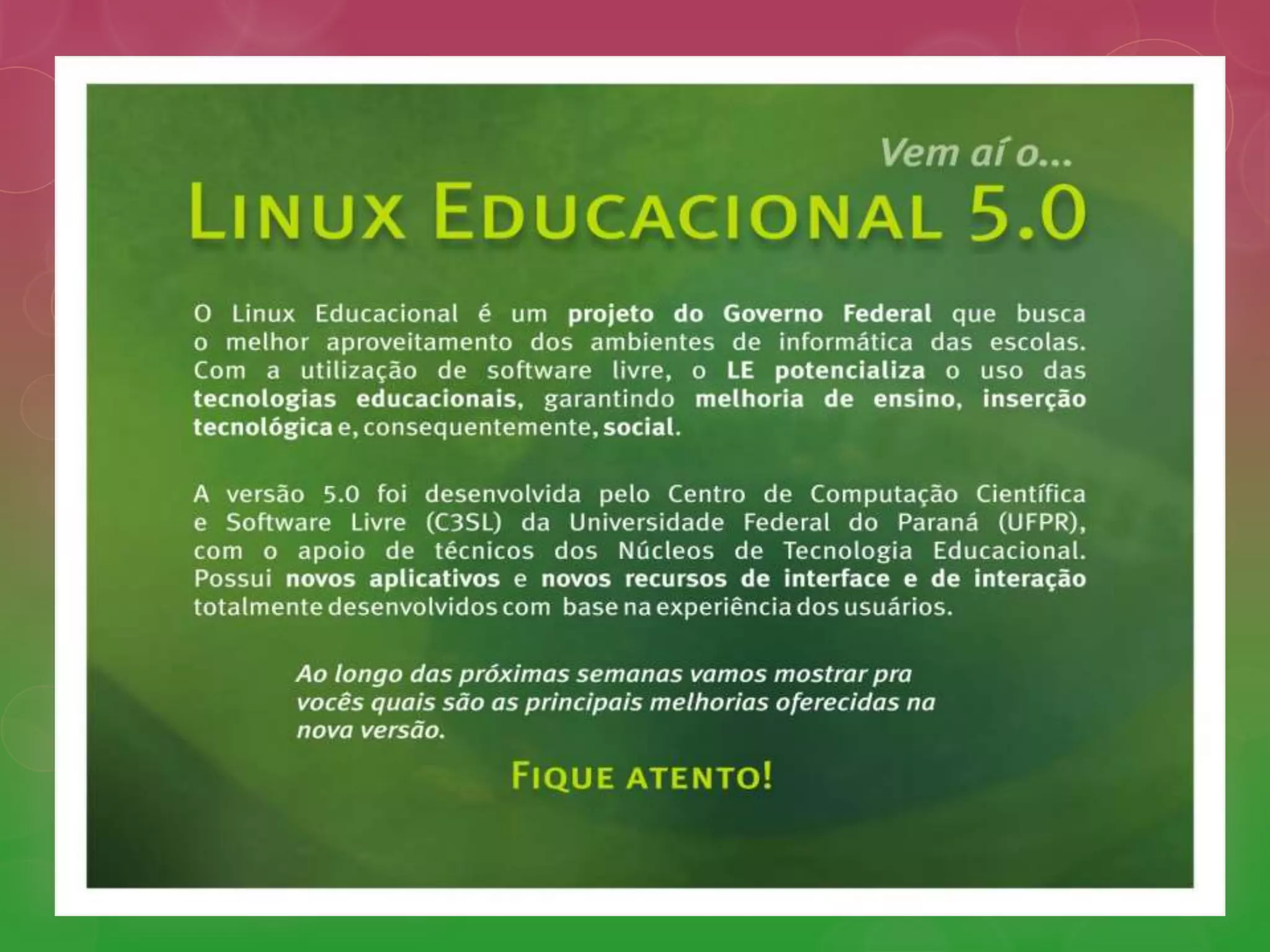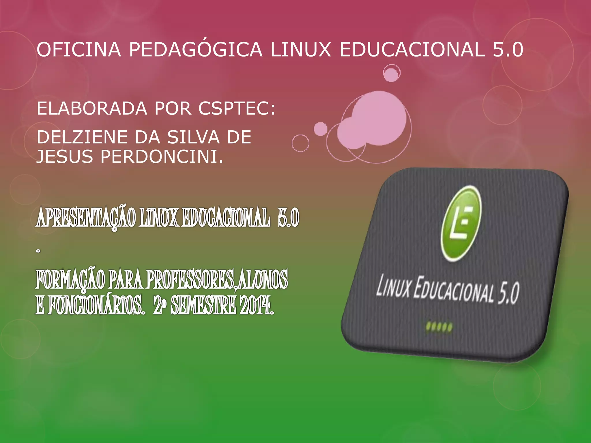 Tutorial apresentação linux educacional 5.0 alunos by delziene perdoncini