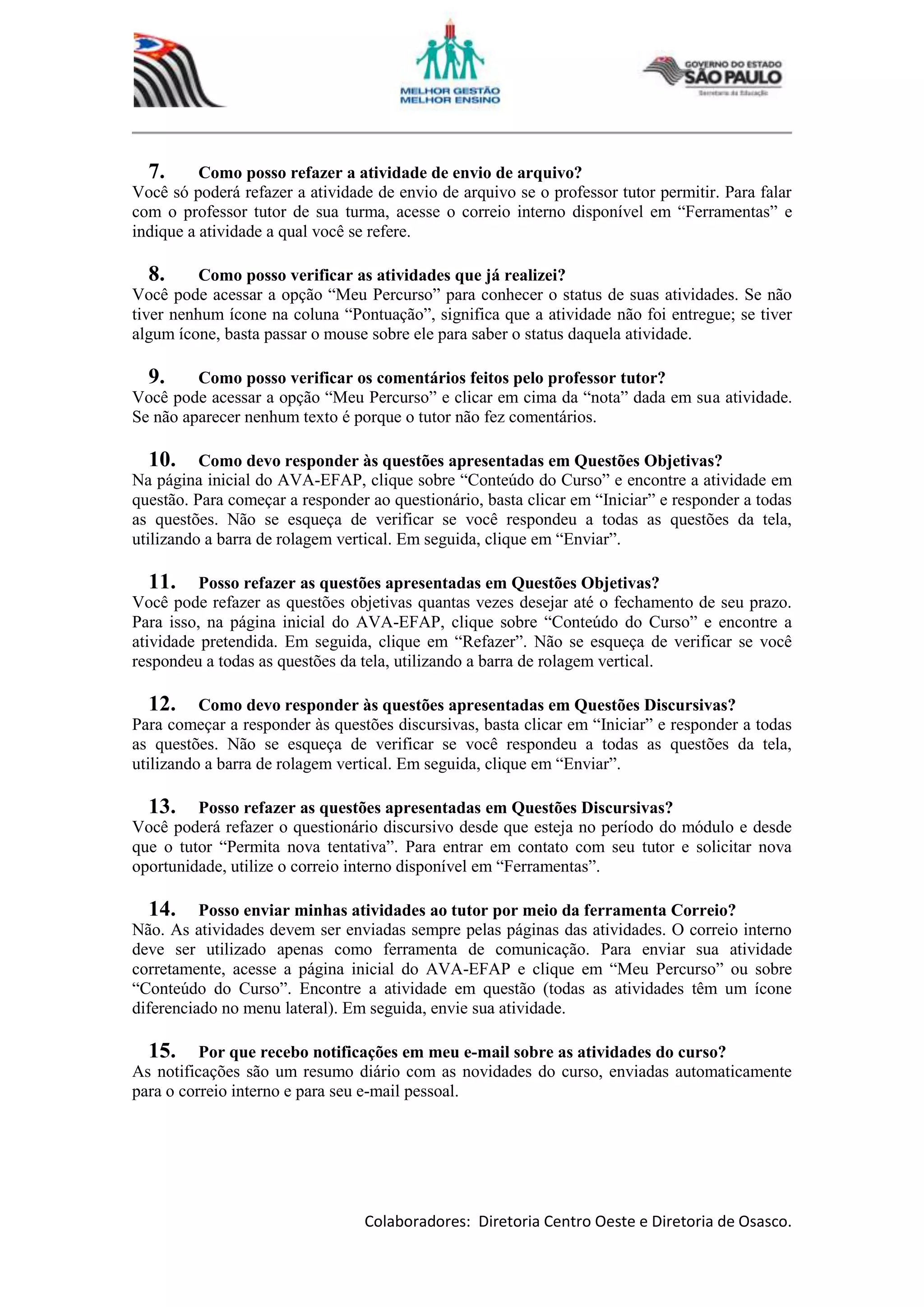 EFAP restringem-se a esse ambiente e não se estende às demais ferramentas da Rede do Saber.
