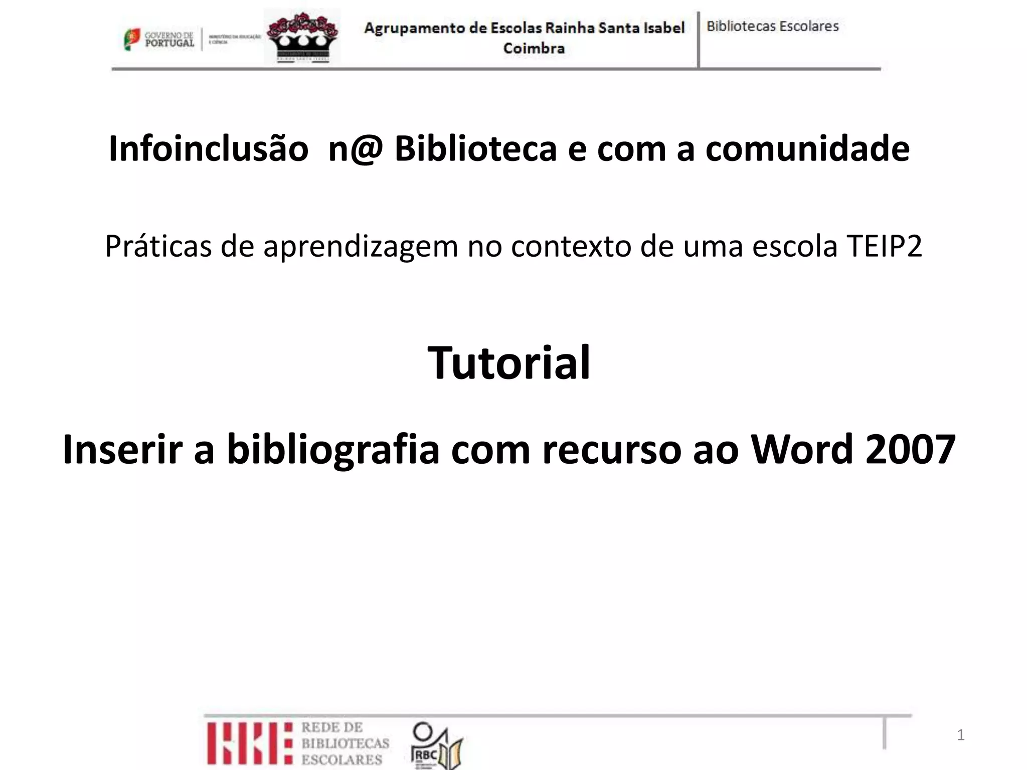 O documento discute como promover a inclusão digital na biblioteca escolar e na comunidade através de atividades práticas para desenvolver competências digitais úteis na vida diária entre pais e alunos de uma escola com programas de apoio socioeconômico. As atividades visam ensinar os pais a apoiar seus filhos com tecnologias digitais e recursos online.