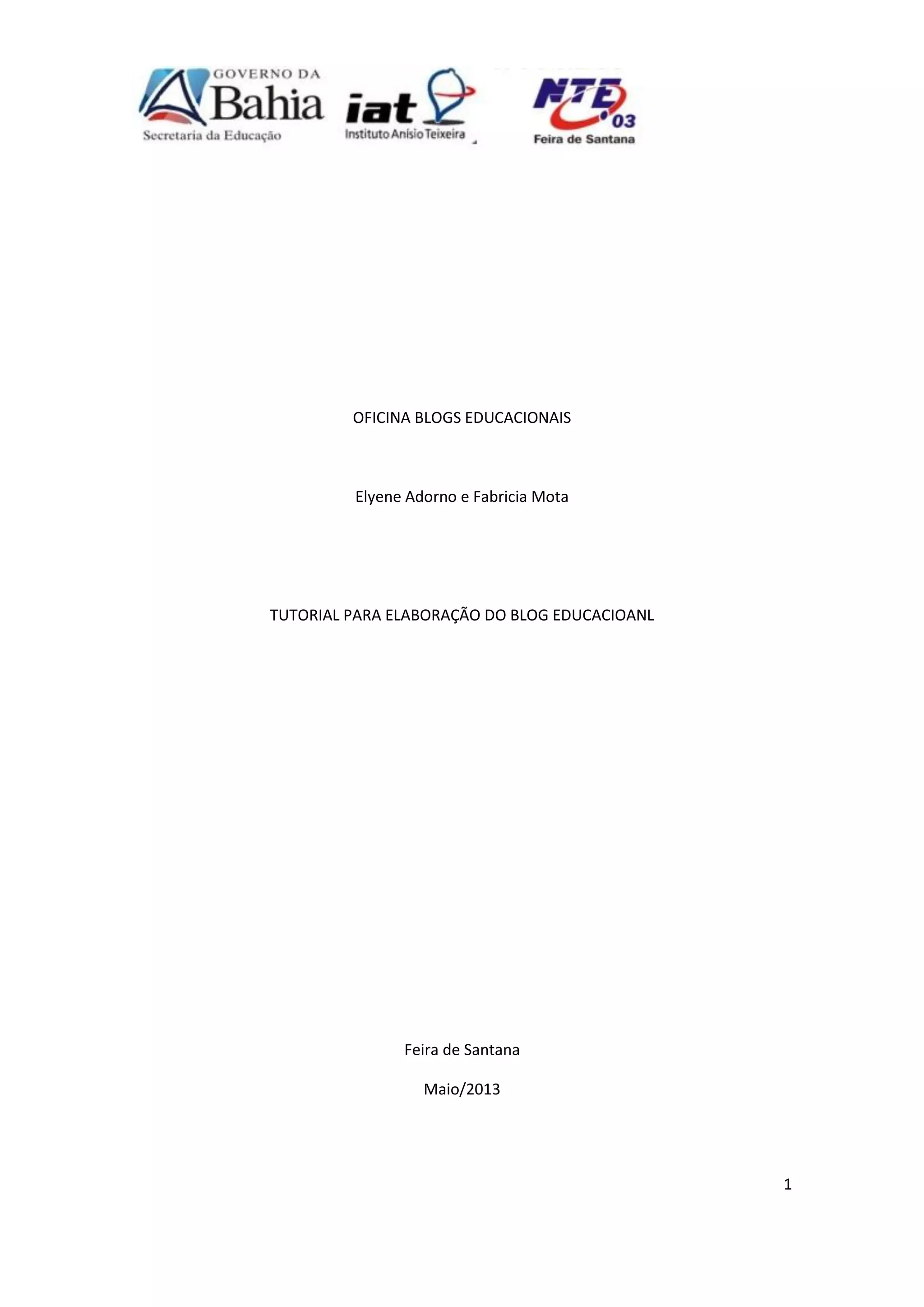 O documento é um tutorial sobre como criar um blog educacional na plataforma Blogspot, abordando desde o cadastro até a personalização do blog. Os autores recomendam definir objetivos claros para o blog e sugerem interatividade com alunos durante o uso. Além disso, são apresentados conceitos como 'gadget' e 'widget', que enriquecem a funcionalidade do blog.