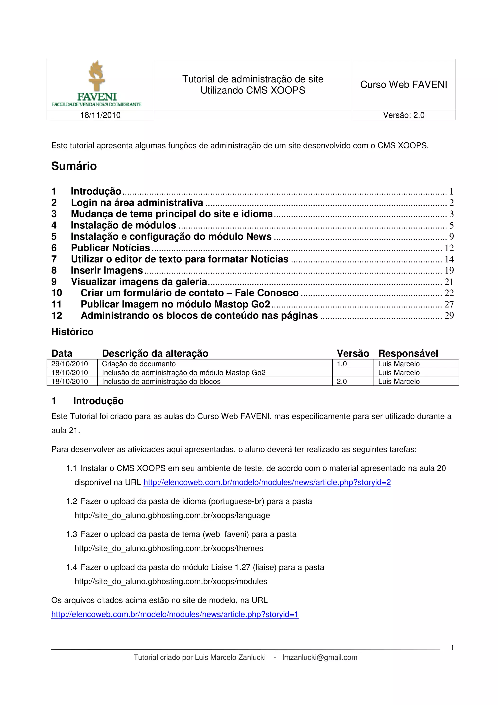 29/10/2010 Criação do documento 1.0 Luis Marcelo