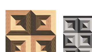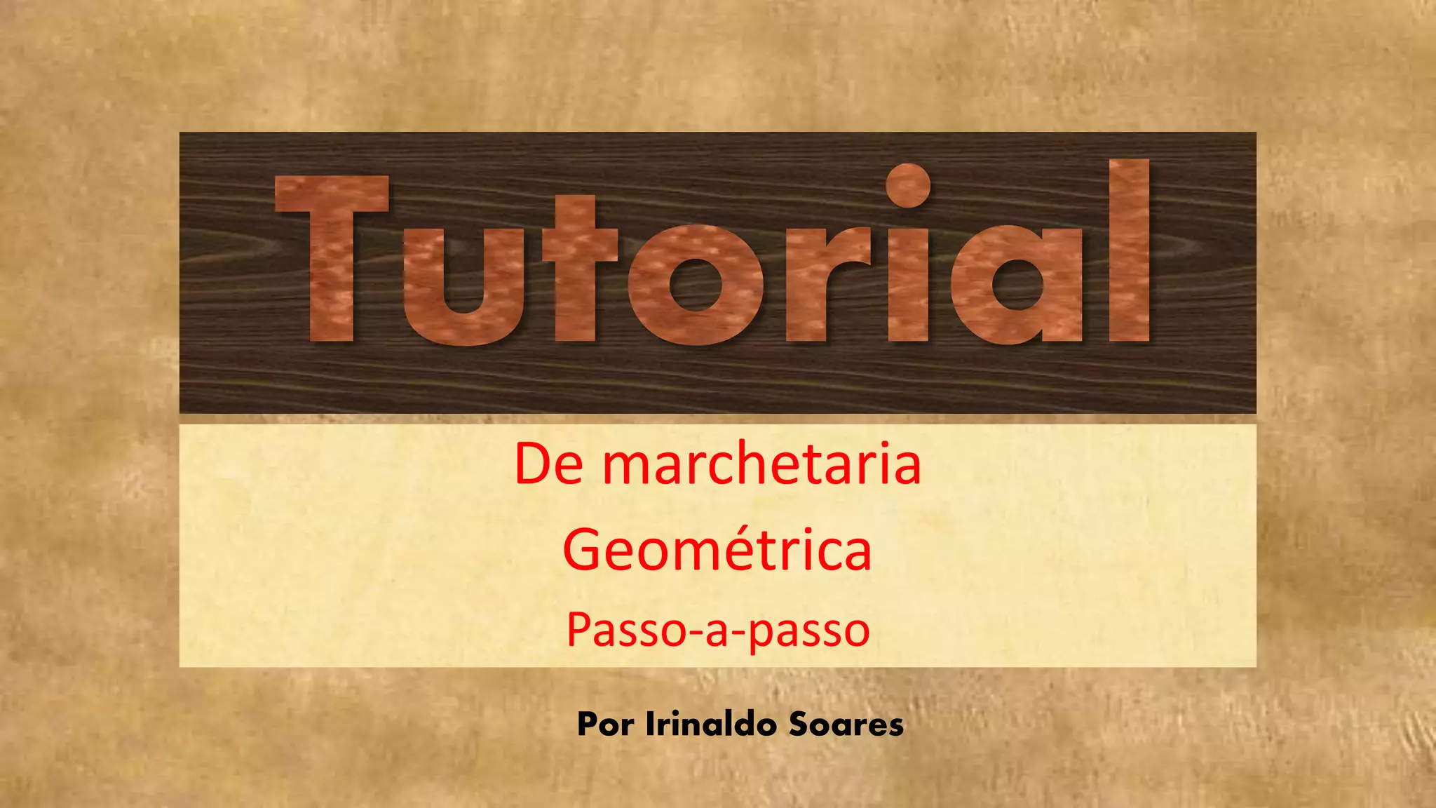 Este documento fornece instruções passo-a-passo para criar uma marchetaria geométrica de 60x40cm utilizando diferentes madeiras como pinho, pau-ferro e figueira branca. Inclui detalhes sobre como cortar as peças de madeira em tamanhos específicos e em ângulos de 45 graus para montar o padrão geométrico, garantindo a harmonia dos tons através da combinação correta das peças sobrantes.