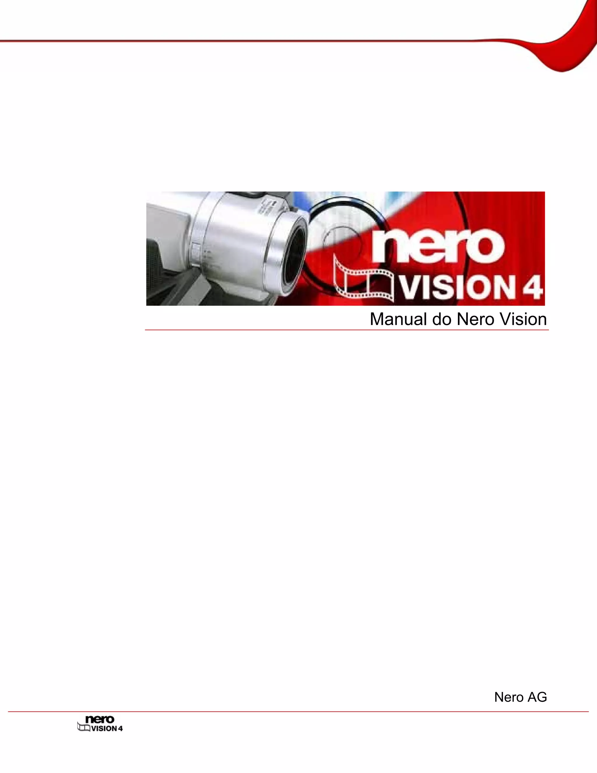 Este manual fornece instruções sobre como utilizar o software Nero Vision. Apresenta informações sobre direitos autorais, requisitos técnicos, formatos de discos suportados e descreve os principais recursos do programa.