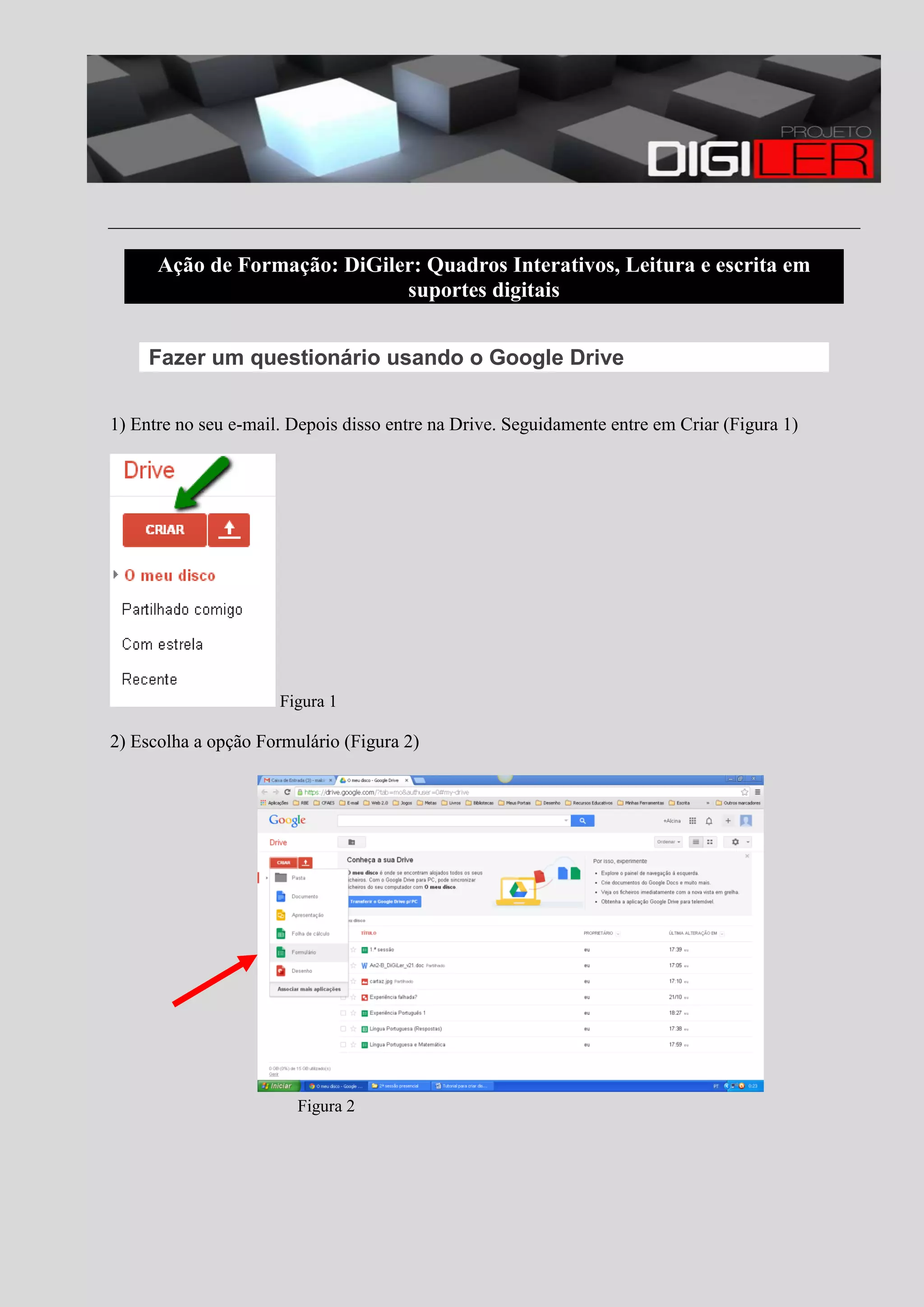 Este documento fornece instruções passo-a-passo para criar um questionário interativo usando o Google Drive. Explica como criar o questionário, adicionar perguntas e respostas de múltipla escolha, verificar e compartilhar o questionário para coletar respostas.