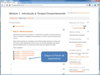 O documento fornece instruções sobre como participar de um fórum no Moodle. Ele explica que o usuário deve primeiro fazer login e acessar o curso desejado. Em seguida, deve acessar o fórum específico e responder ao enunciado ou postagens de colegas, enviando a resposta e confirmando a publicação. O usuário pode editar ou excluir sua própria postagem se necessário.