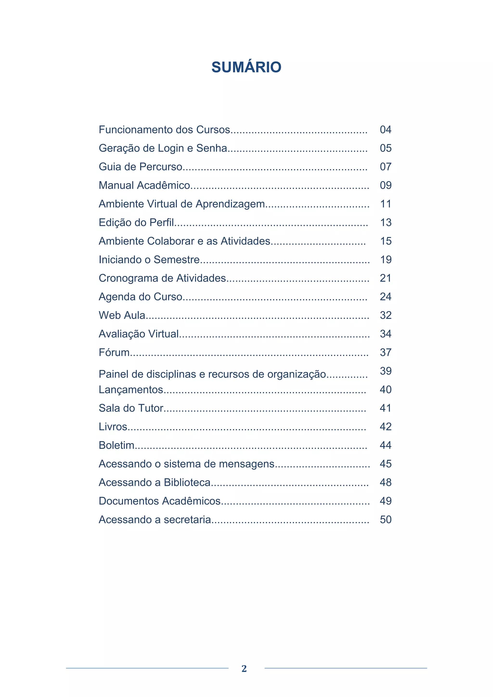 acadêmicos, nele, você encontra o Manual Acadêmico e o Calendário
