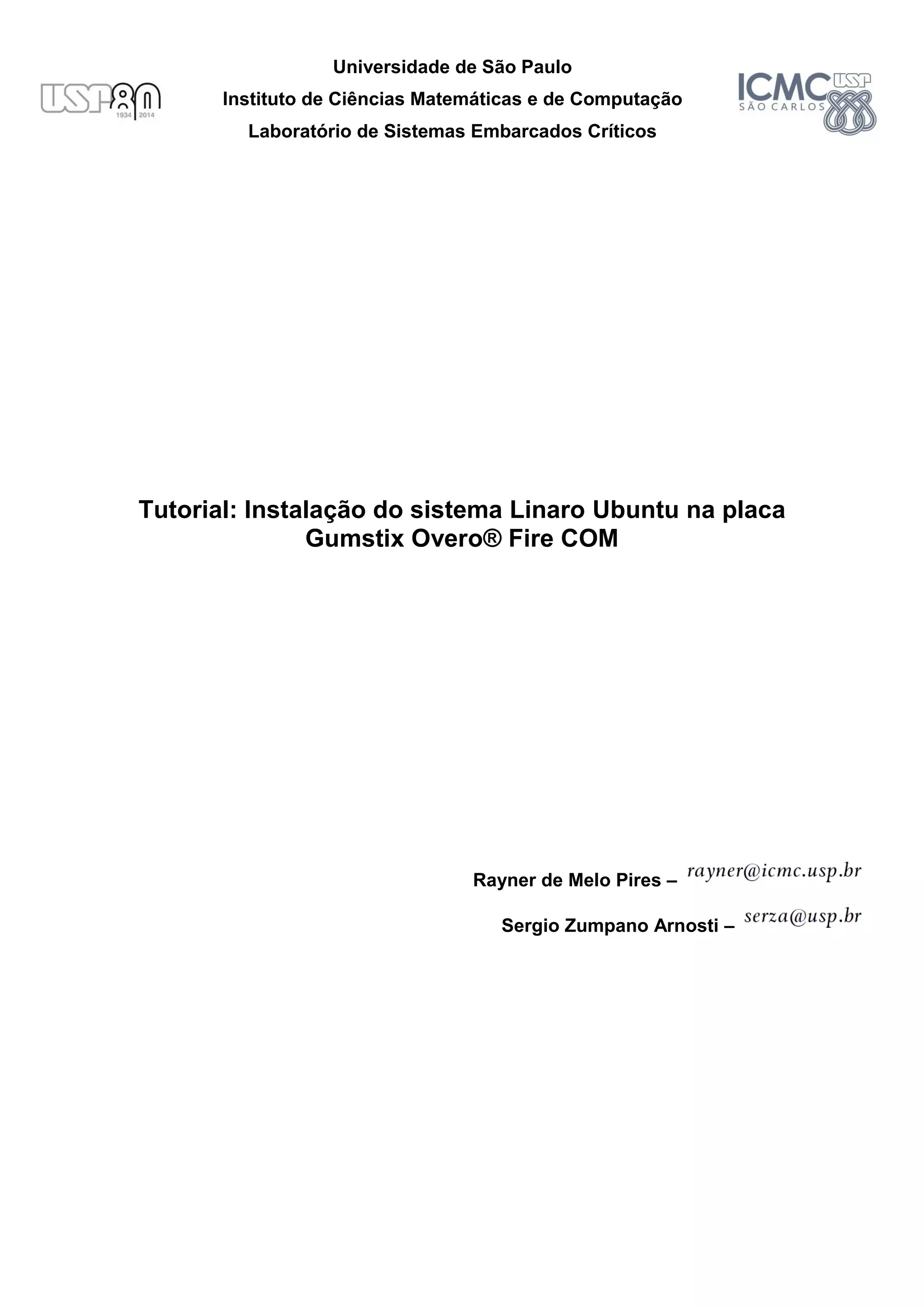 Este documento fornece instruções para instalação do sistema operacional Linaro Ubuntu na placa Gumstix Overo Fire COM, configuração de conexão sem fio e atualização do sistema. Inicialmente, os arquivos do sistema Linaro e ferramentas são baixados e um cartão microSD é preparado para inicializar a placa. Em seguida, demonstra-se como configurar uma rede sem fio com criptografia WPA ou uma rede Ad-Hoc e verificar a conexão. Por fim, informa como atualizar o sistema e pacotes.