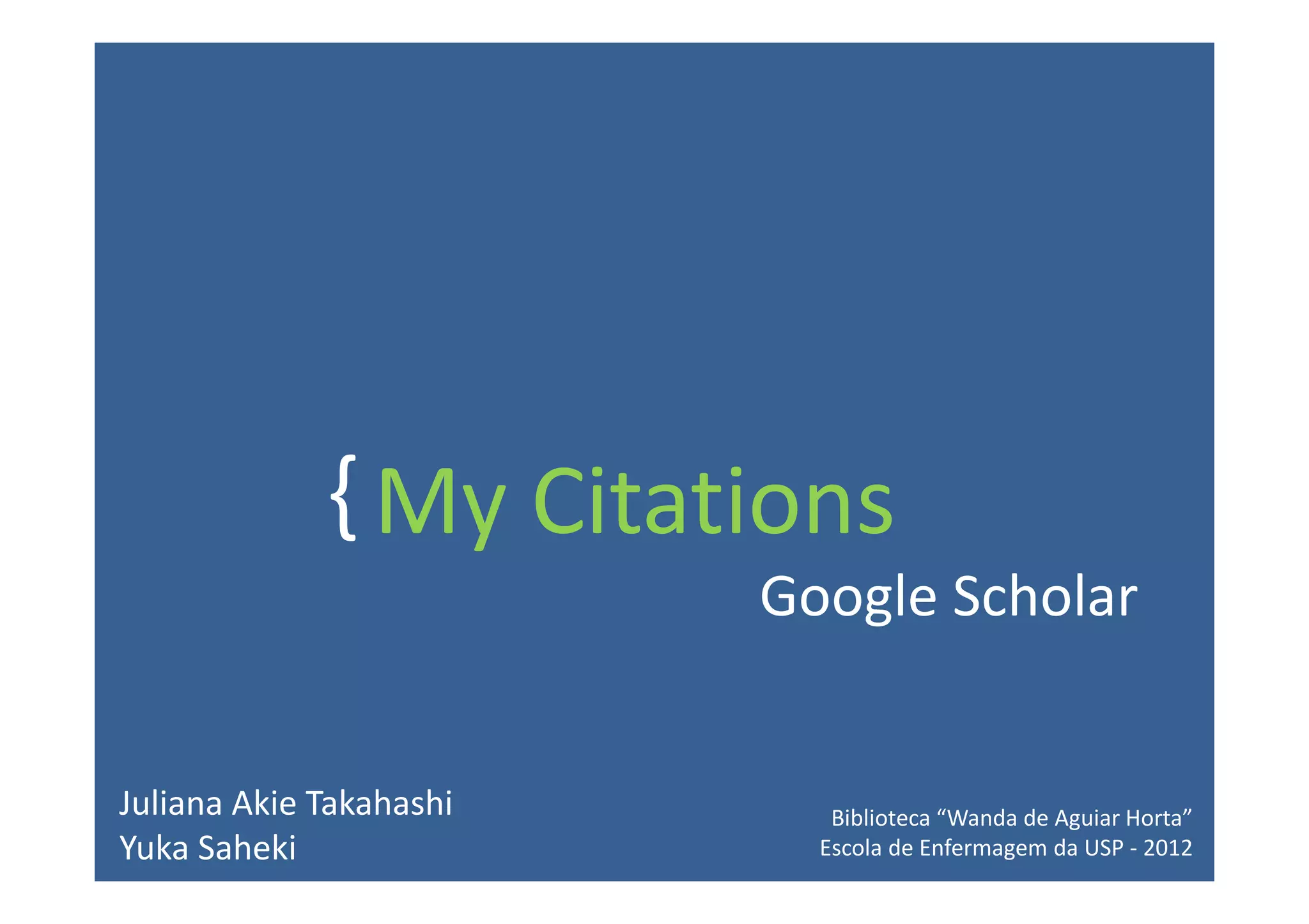 O documento fornece instruções sobre como criar um perfil no Google Scholar, incluir publicações e coautores, convidar coautores, ordenar artigos e realizar ações como adicionar, exportar e mesclar referências.
