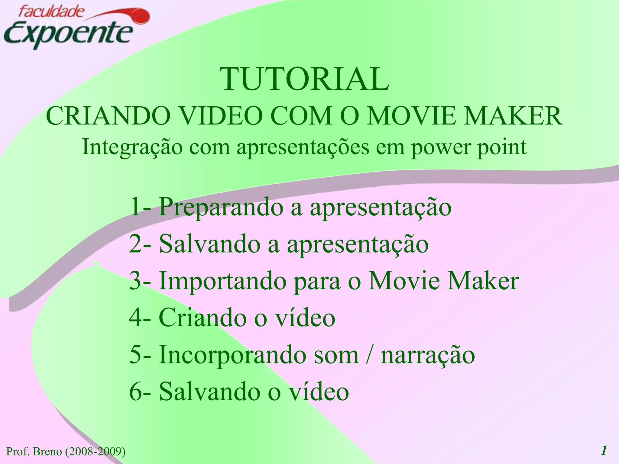 O documento fornece instruções em 7 passos para criar um vídeo incorporando slides de PowerPoint usando o Movie Maker: 1) Preparar a apresentação PowerPoint, 2) Salvar a apresentação em formato de imagem, 3) Importar as imagens para o Movie Maker, 4) Criar o vídeo arrastando as imagens, 5) Adicionar áudio e narração, 6) Salvar o vídeo final, 7) Praticar leva à perfeição.