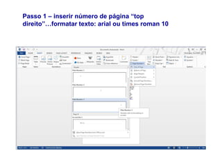 O documento é um guia passo a passo para a formatação de um trabalho acadêmico, incluindo instruções para inserir números de página e formatar o texto. Ele detalha a retirada da numeração de páginas não textuais e ajustes no layout. O autor agradece ao professor Romante Rodrigues ao final.