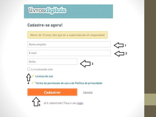 Este documento fornece instruções sobre como criar um livro digital. Ele ensina como converter um livro físico em um formato digital, como PDF ou e-book, e como publicá-lo online para que outras pessoas possam ler. O documento encoraja o leitor e deseja boa sorte com seu projeto de livro digital.