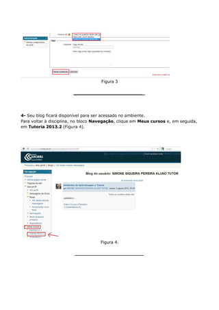 1- Quando logado(a) na disciplina Tutoria 2013.2, no bloco Menu do Blog, clique