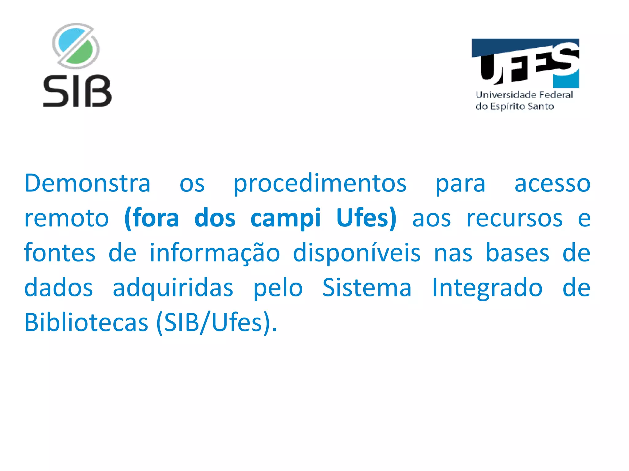 Este documento fornece instruções em 7 passos para configurar o navegador Chrome e 6 passos para configurar o Firefox para acesso remoto às bases de dados da biblioteca da Ufes, definindo o servidor proxy e solicitando login de usuário. Aconselha-se resetar as configurações após a pesquisa.