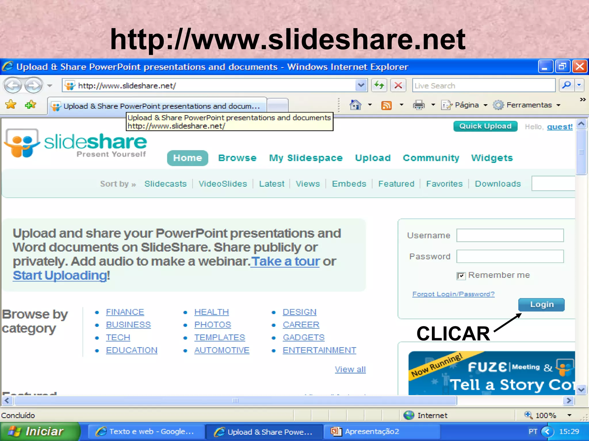 Este documento fornece instruções sobre como compartilhar uma apresentação no SlideShare, incluindo como adicionar tags e configurar a privacidade, além de fornecer um link para compartilhar.