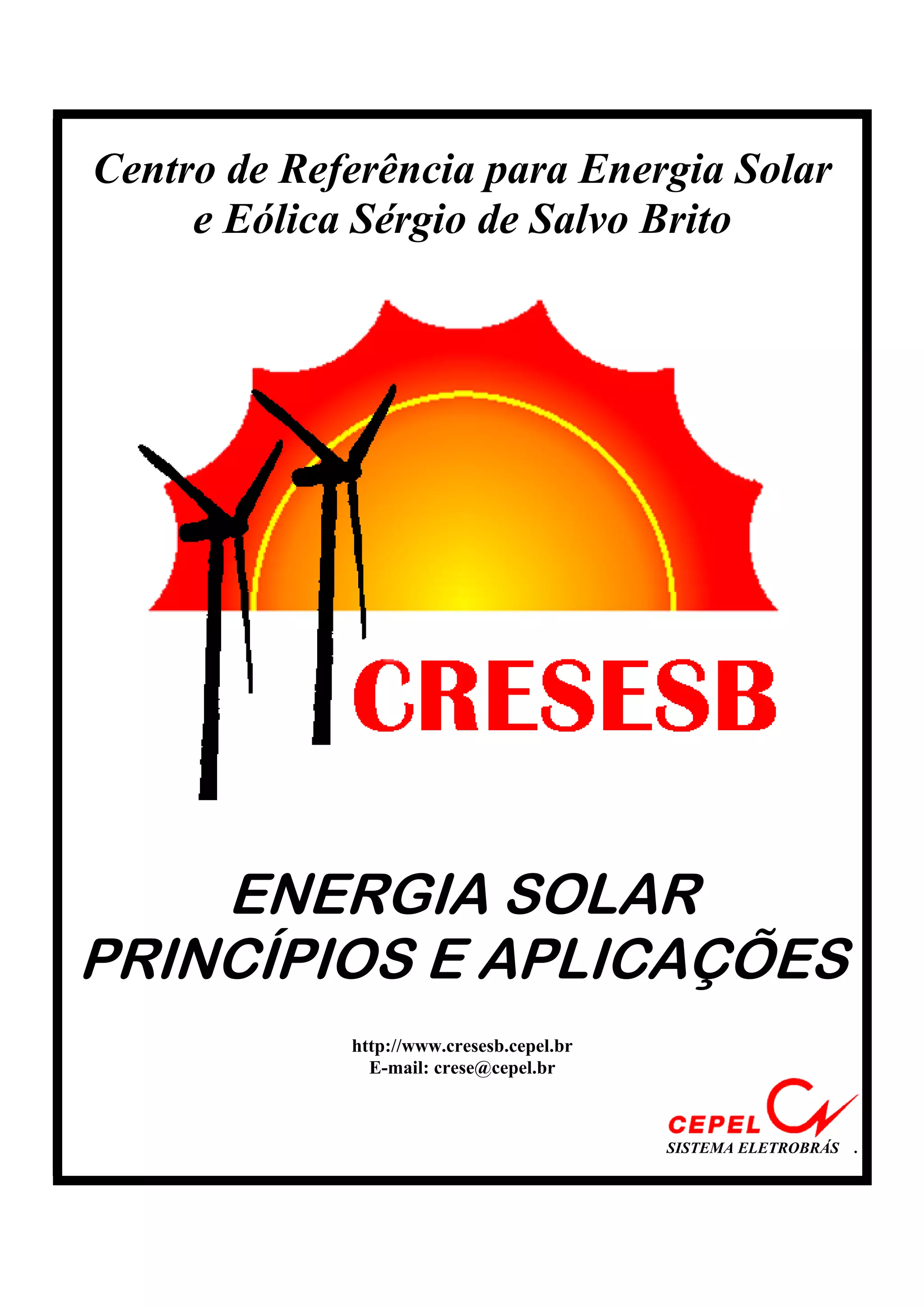 O documento discute os princípios da energia solar, incluindo: (1) A radiação solar é uma fonte energética inesgotável que pode ser aproveitada por meio de sistemas de captação e conversão; (2) Existem três formas principais de aproveitamento - fotovoltaica, fototérmica e arquitetura bioclimática; (3) A radiação solar incidente na Terra pode ser captada e convertida em eletricidade por células solares fotovoltaicas, principalmente as de silício.