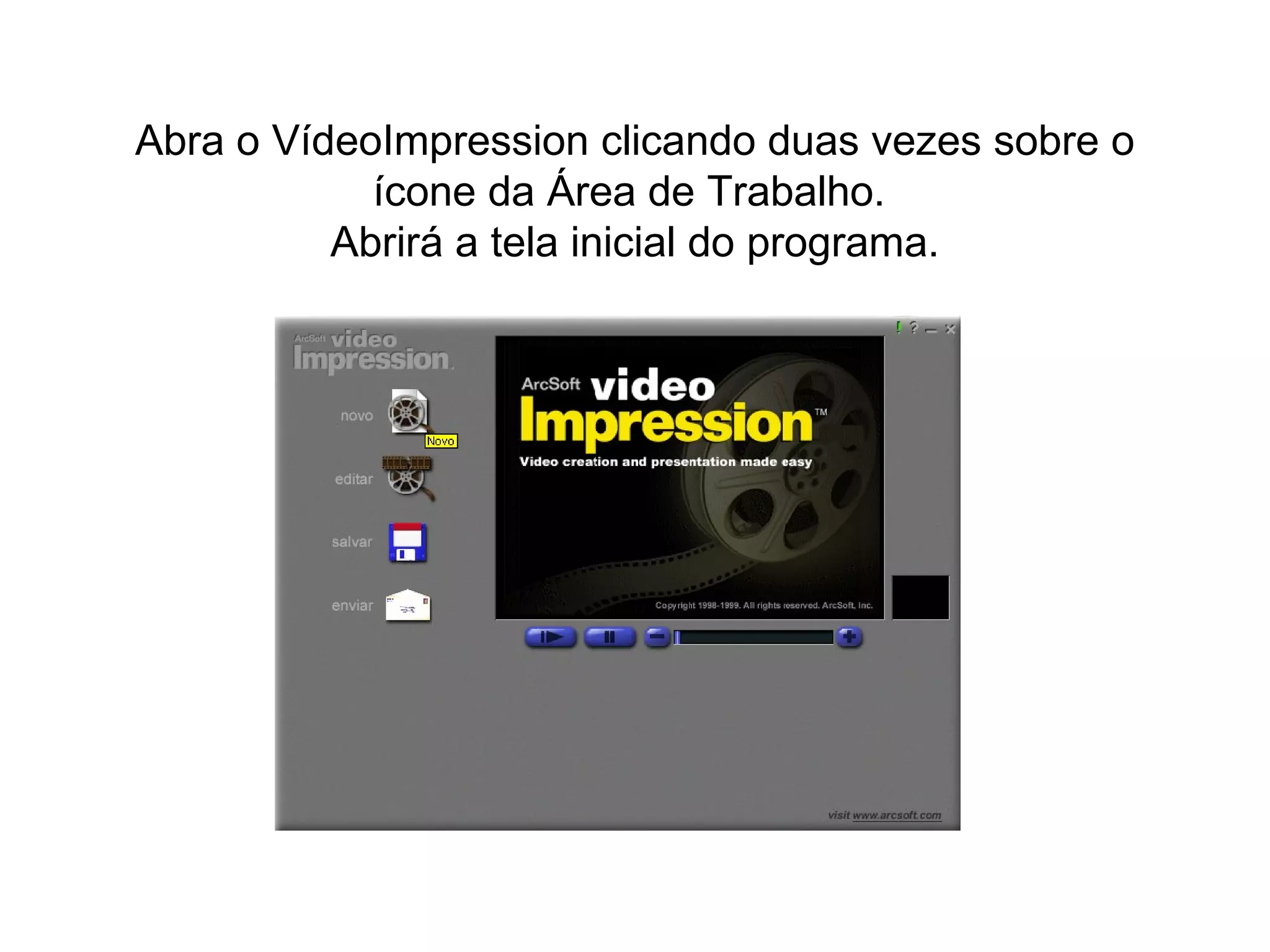 Abra o VídeoImpressionclicando duas vezes sobre o ícone da Área de Trabalho. Abrirá a tela inicial do programa.