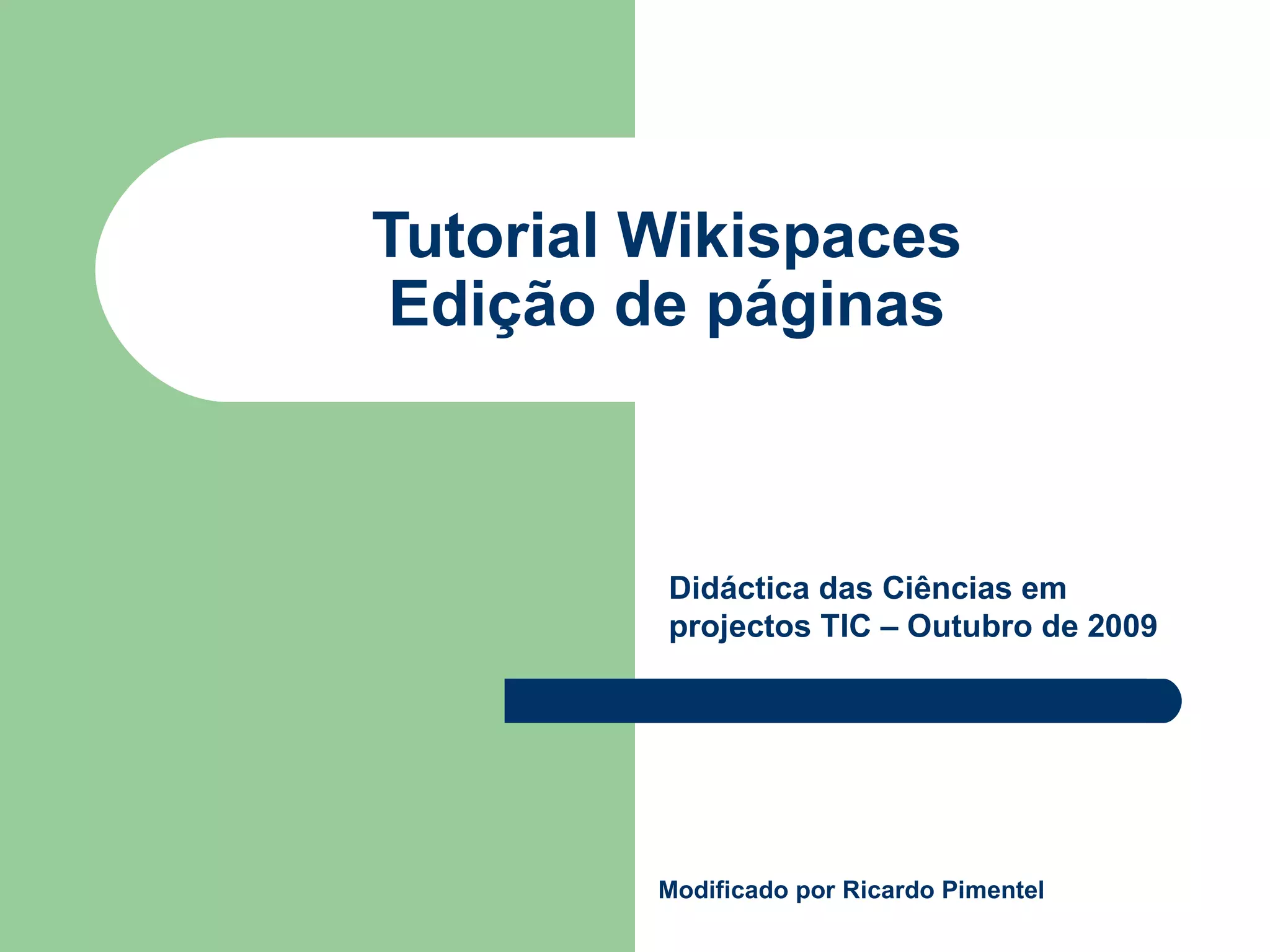 1) O documento fornece instruções sobre como editar páginas em uma wiki no Wikispaces, incluindo como fazer login, inserir texto formatado, imagens, links, widgets e código.