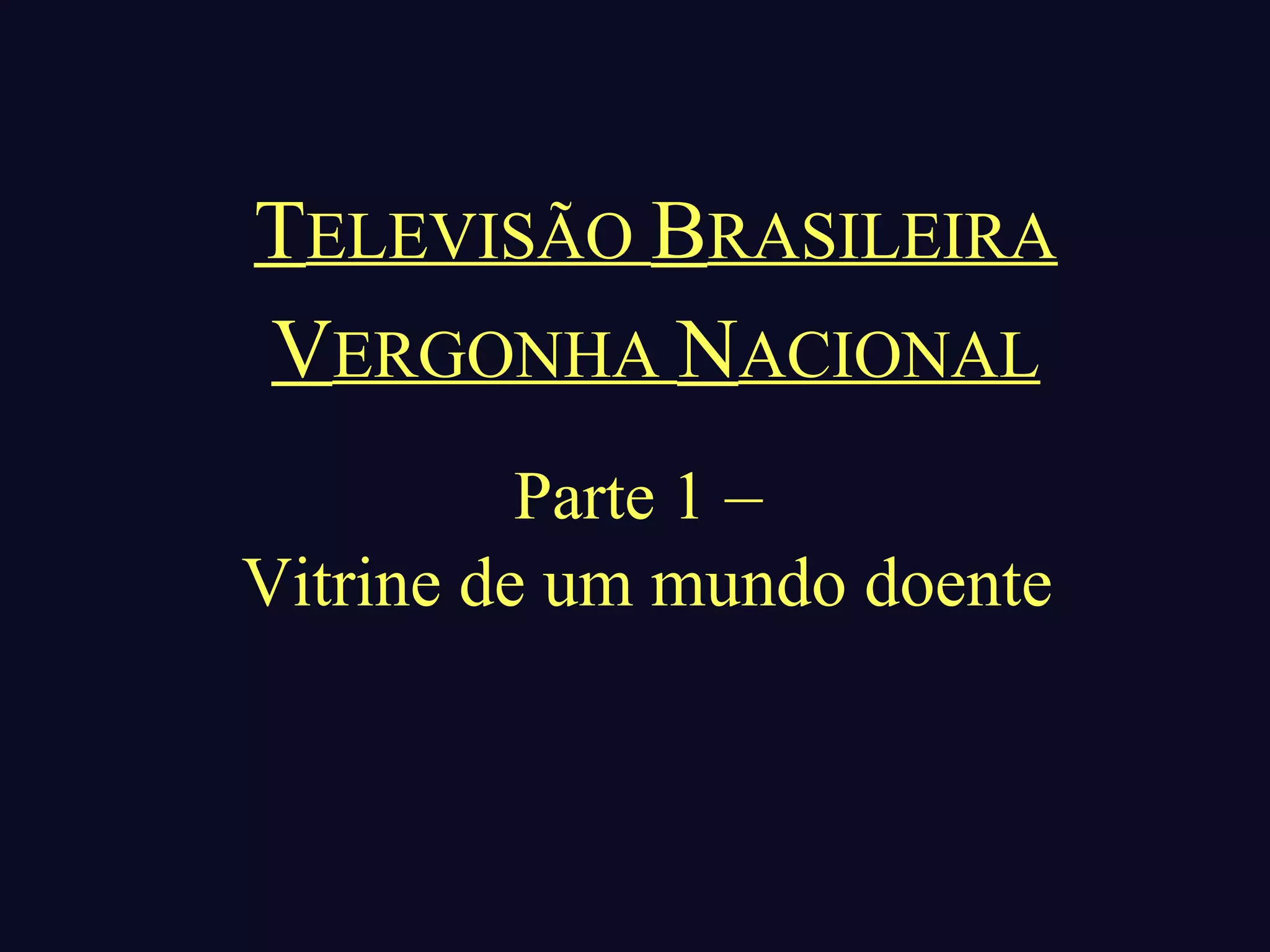O documento discute como a televisão brasileira promove a burrice e a manipulação das massas para fins de lucro. Um roteirista da Globo revela que a meta da emissora é "emburrar" o público, disseminando futilidade no horário nobre. Isso representa um golpe quase mortal na cultura brasileira e é anti-cidadania. Devemos buscar outros caminhos para a nação, com foco em educação, arte e cultura.