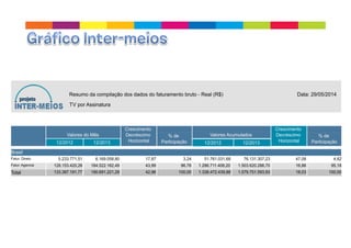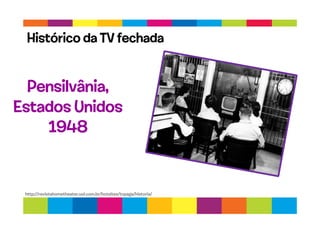 O documento descreve a história da TV por assinatura nos EUA e Brasil, desde sua popularização na década de 1940 nos EUA até os dias atuais, quando há mais de 14 milhões de domicílios brasileiros com TV por assinatura. Destaca momentos importantes como o surgimento da HBO em 1975 e da CNN em 1980 nos EUA e a regulamentação no Brasil a partir de 1988.
