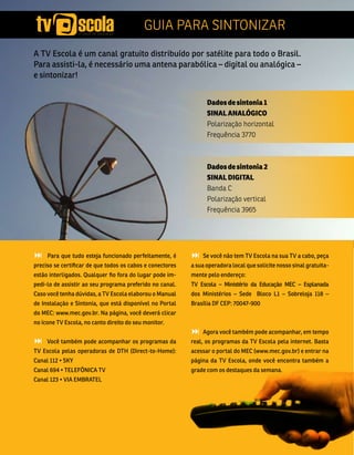 1) O documento discute a importância da TV Escola como recurso educacional e como sintonizar o canal.