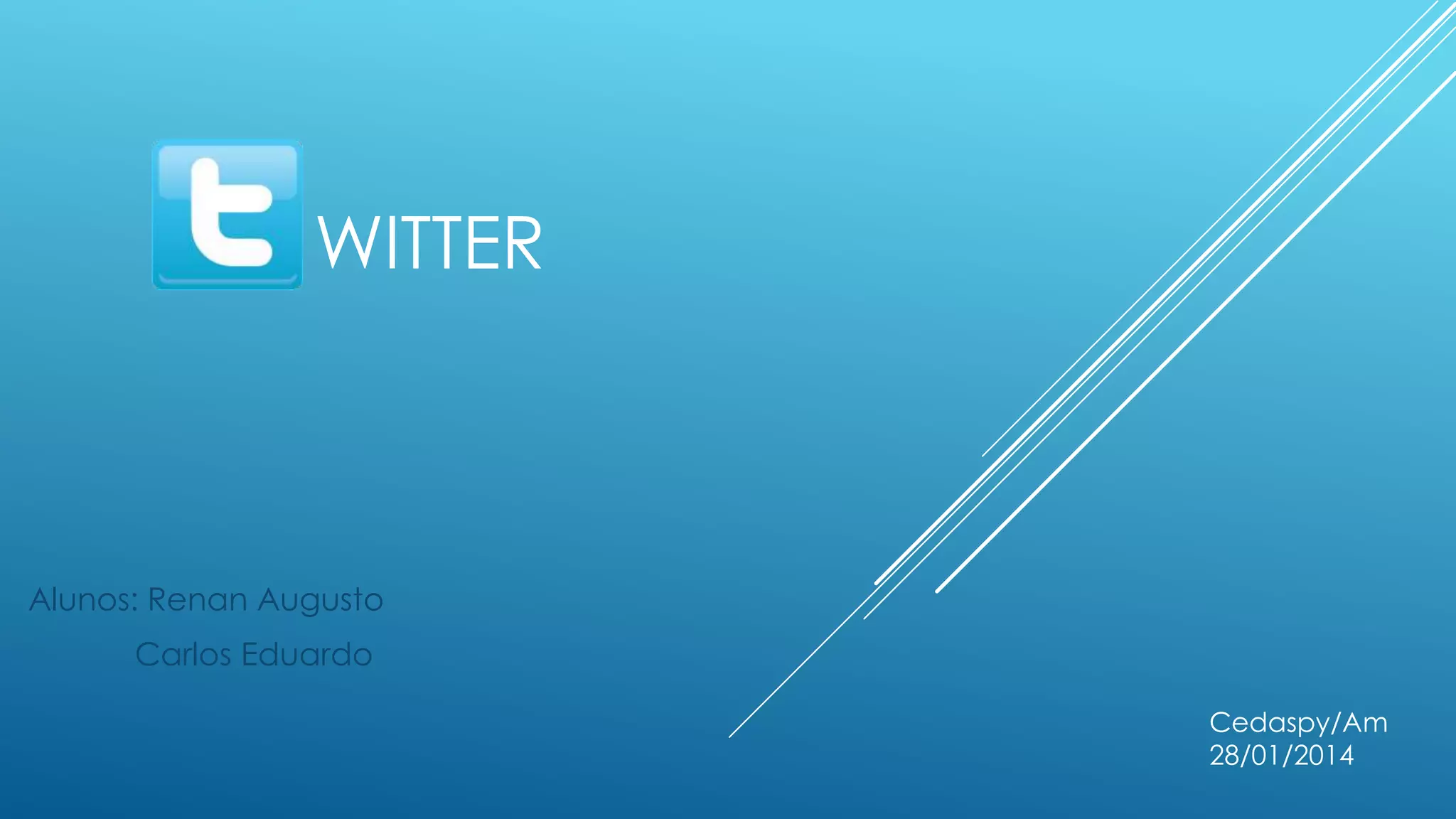 O documento explica o que é o Twitter, como uma rede social de microblogging onde os usuários podem publicar mensagens curtas ("twits") de até 140 caracteres e seguir outros usuários. Ele também fornece um guia de 7 passos para usar o Twitter, como criar uma conta, publicar o primeiro twit, seguir outros usuários, marcar usuários em conversas com o símbolo @, ver quem falou sobre você, retuitar outros usuários e usar hashtags para agrupar assuntos.