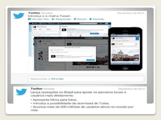 O Twitter foi fundado em 2006 por Jack Dorsey, Evan Williams e Biz Stone como um projeto paralelo da empresa de podcasting Odeo. O Twitter começou como um serviço de troca de status curtos semelhante a SMS. Ao longo dos anos, o Twitter evoluiu e adicionou novas funcionalidades, ganhando milhões de usuários ao redor do mundo.