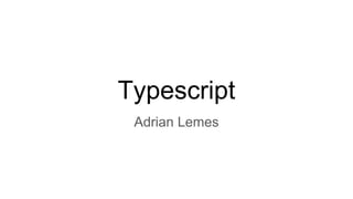 O documento discute TypeScript, uma linguagem de programação que adiciona tipagem estática e outras funcionalidades ao JavaScript. TypeScript ajuda a construir aplicações JavaScript em larga escala ao adicionar tipagem dinâmica, permitindo compilar código para JavaScript puro e rodar em qualquer browser ou ambiente.